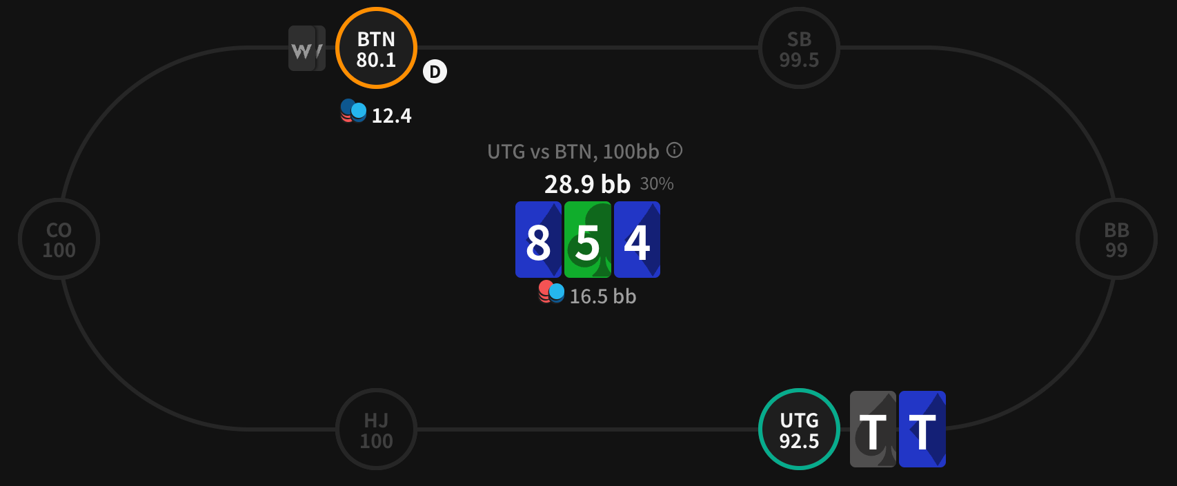 ターン以降は割愛します!今回はこの例をもとにフロップまでのTTのアクションがどうだったのかを、学習機能を用いた例として動画を用意しています。