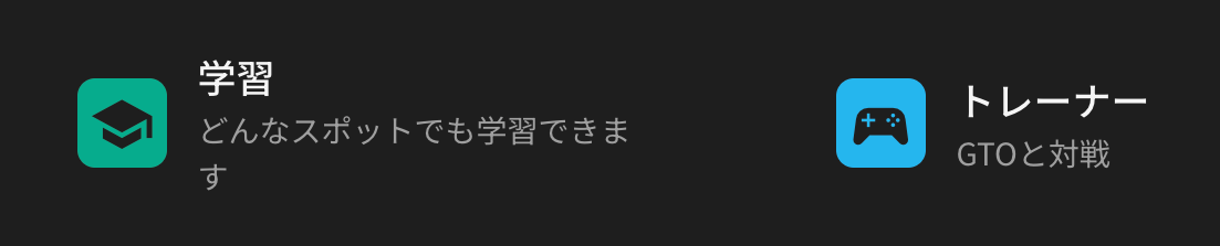 トレーナー機能は、実際にGTO戦略を身につけるための練習機能です。学習機能が「調べる」機能だとすれば、トレーナー機能は「実践形式で感覚を養う」機能と考えてください。